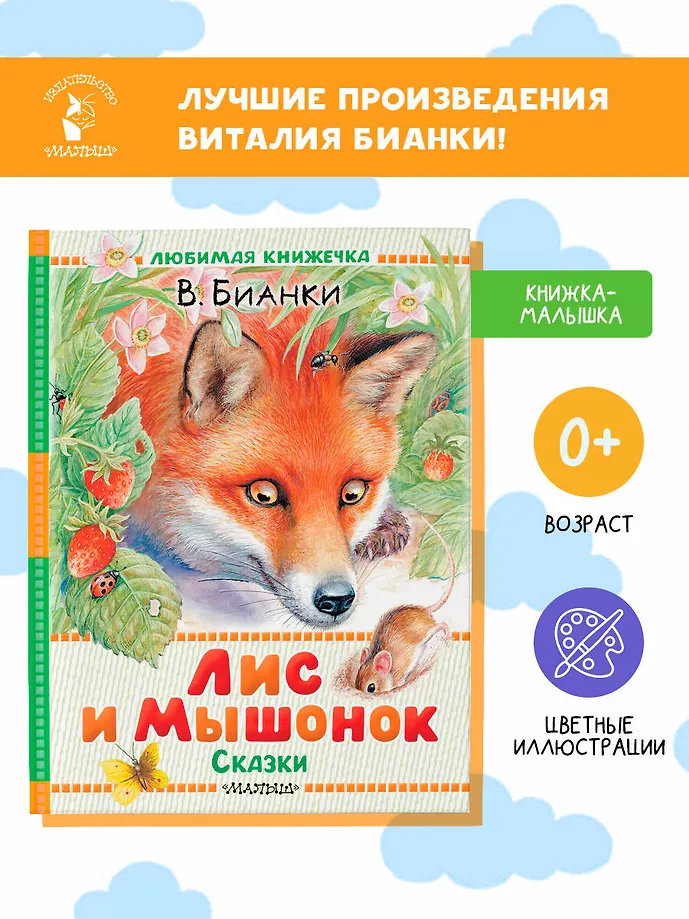 Виталий Бианки с детства интересовался природой и животными. Эти знания об окружающем мире помогли ему написать замечательные произведения для детей о жителях лесов и полей, о животных диких и домашних. В книгу "Лис и Мышонок" вошли сказки "Теремок", "Приключения Муравьишки" и "Лесной Колобок — Колючий Бок". Художник Иван Цыганков.