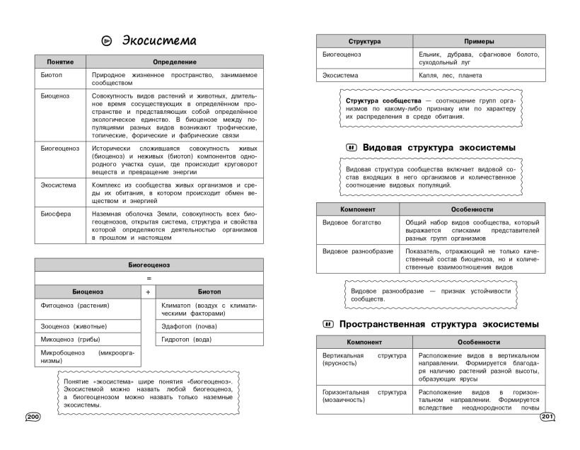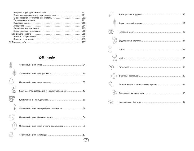 Справочник охватывает все основные темы школьной программы по биологии за 5–11 классы. Каждая тема доступно изложена в таблицах, сопровождается примерами и упражнениями для закрепления материала. Анимационные видеоуроки, к которым ведут QR-коды в книге, являются отличительной особенностью издания и предлагают наглядные объяснения сложных тем. Благодаря этому процесс обучения становится более разнообразным и позволяет ученикам изучать материал в удобном для них темпе и формате. Пособие станет надёжным помощником в достижении наиболее высоких результатов при подготовке к урокам и экзаменам. Книга адресована учащимся средних и старших классов, учителям, а также всем заинтересованным в изучении биологии.