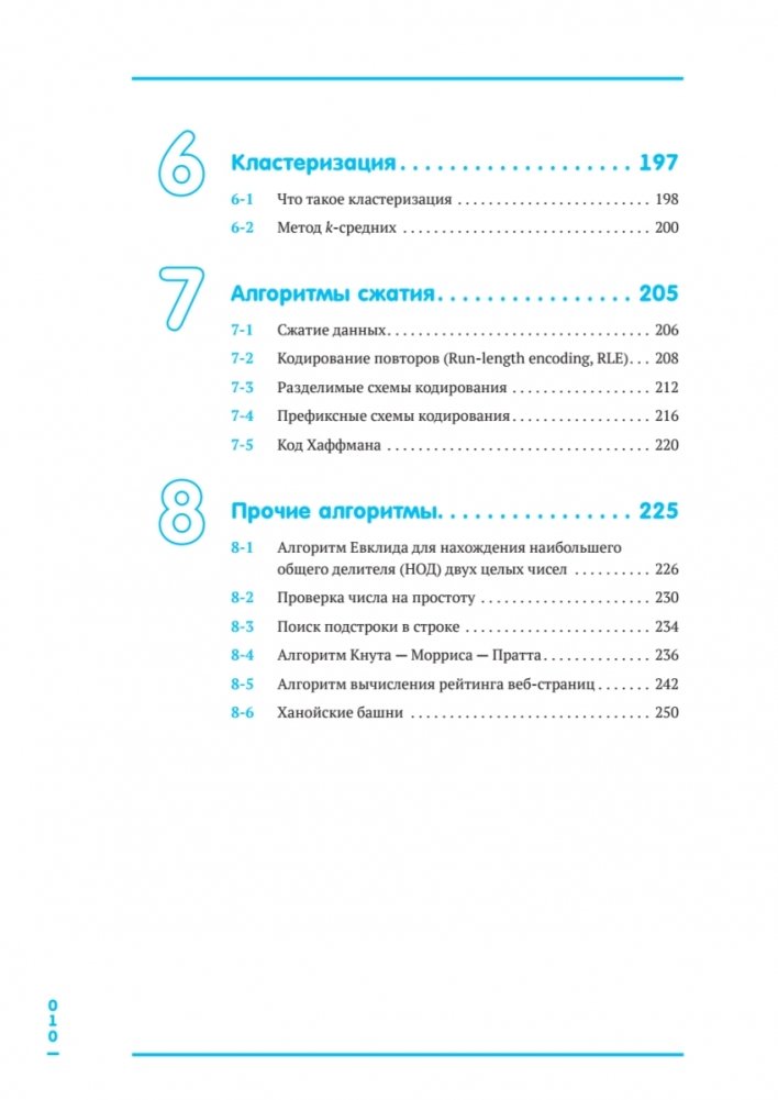 Эта яркая книга делает изучение алгоритмов и структур данных простым и увлекательным. Благодаря полноцветным иллюстрациям, схемам и наглядным примерам сложные концепции становятся понятными даже новичкам. Вы узнаете, что такое эффективность алгоритмов, как работают сортировка, поиск, графы и хеш-таблицы, а также познакомитесь с криптографией, сжатием данных, защитой информации и машинным обучением (алгоритмом кластеризации). Материал изложен так, чтобы вы не просто запомнили алгоритмы, но и научились применять их на практике.
