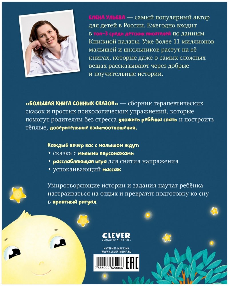 В начале книги родители найдут полезные советы о том, как легче уложить малыша спать, от автора сказок — известного педагога и самого читаемого в России детского писателя Елены Ульевой.