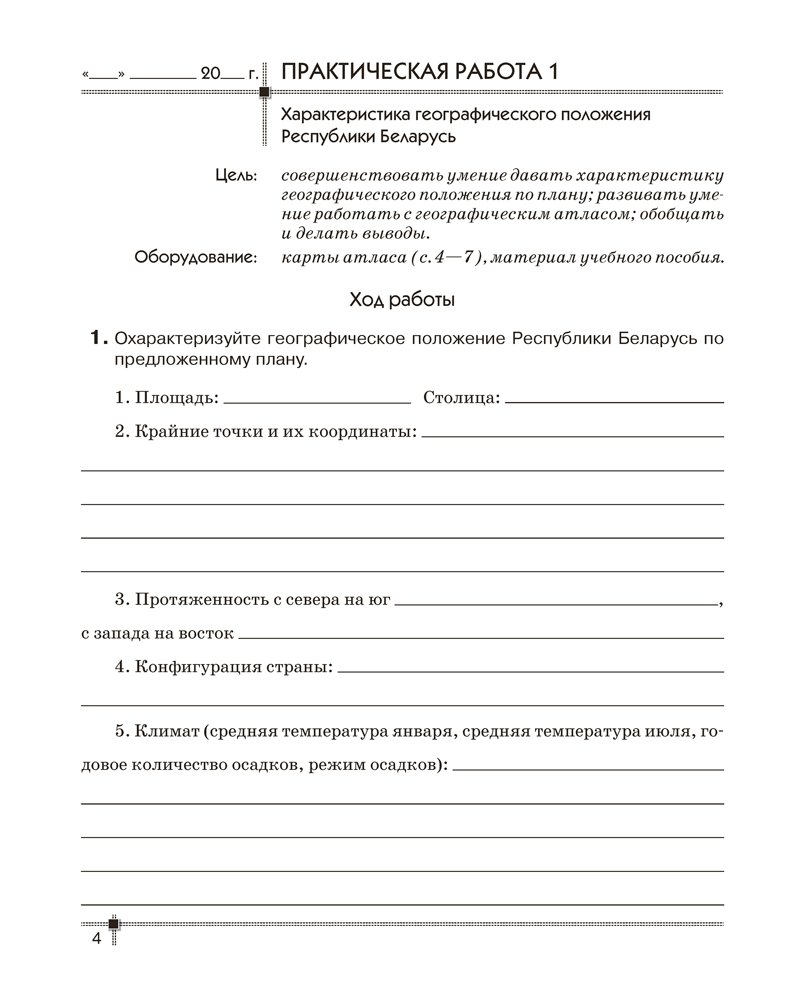 Тетрадь составлена в соответствии с учебной программой и учебным пособием по географии для 9 класса. В ней содержатся материалы и инструкции для проведения программных практических работ. В конце тетради предусмотрены страницы для выполнения заданий тематического контроля.
