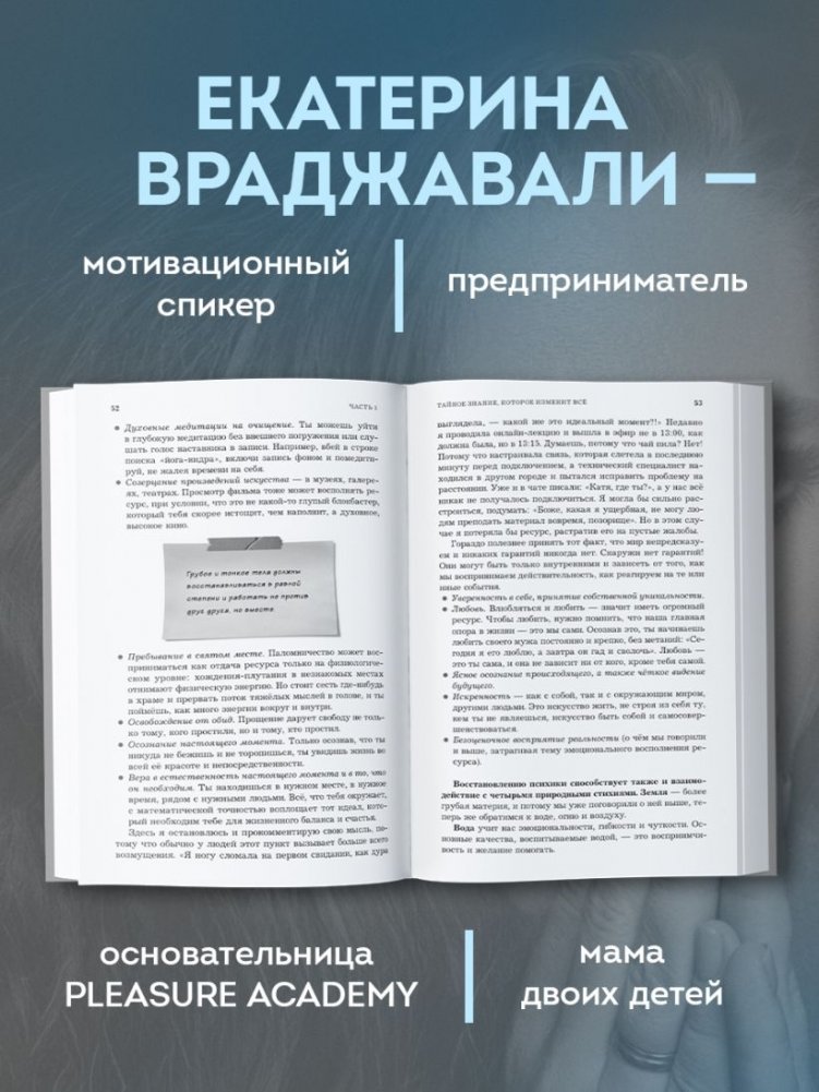 Мотивационный спикер и специалист по проблемам рода и семьи Екатерина Враджавали рассказывает о созданной ею системе "Фундамент", которая позволяет распознать свои настоящие чувства и желания, и начать проживать свою собственную жизнь, полную ярких эмоций, чувств и удовольствия. Автор обещает: вдумчиво изучив книгу и выполнив все практические задания, вы научитесь восполнять свой ресурс, почувствуете, как к вам возвращается энергия, осознаете глубокую связь со своим родом и подключитесь к его силе, поймете в чем ваши истинные таланты, начнете их реализовывать и просто заживете в свое удовольствие. Главная ценность "Фундамента" состоит в том, что это не набор оторванных от жизни, абстрактных теорий, а живая, выстраданная, проверенная временем и основанная на личном опыте автора система, помогающая человеку вернуть себе себя.