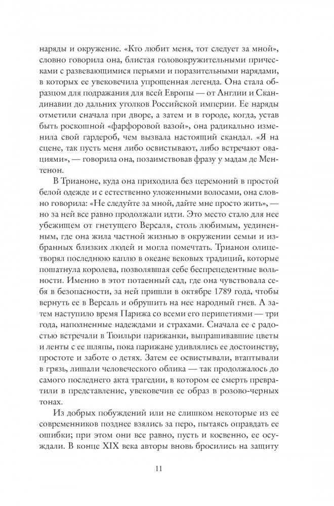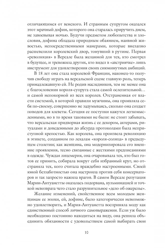 Маленькая эрцгерцогиня, юная своенравная дофина, новоявленная королева Франции, еще не привыкшая к своему титулу, любящая мать — со сменой амплуа менялся и ее облик. В этой увлекательной биографии вы узнаете, как австрийская принцесса изменила французскую моду, в чем заключается секрет ее популярности, не угасающей и сегодня, а также откроете для себя, что значит быть королевой.