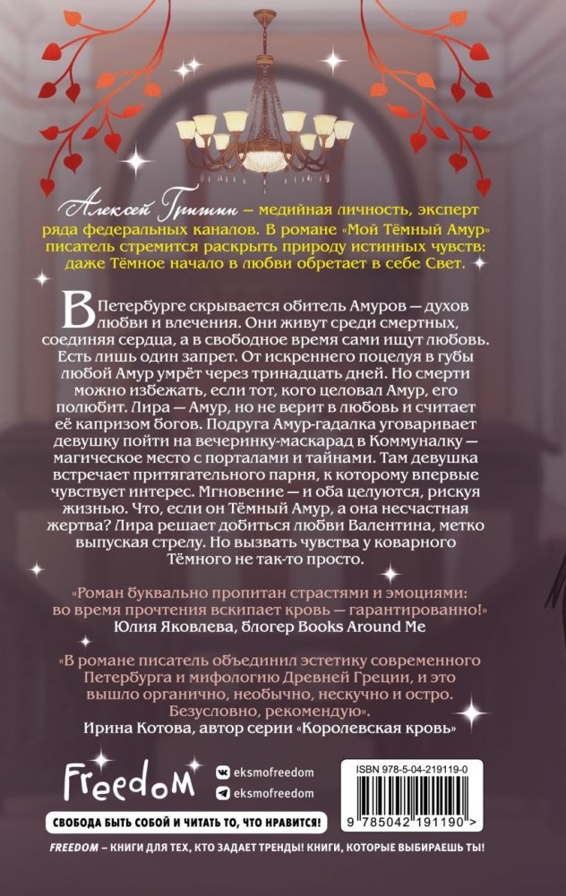 В Петербурге скрывается обитель Амуров – духов любви и влечения. Они живут среди смертных, соединяя сердца, а в свободное время сами ищут любовь. Есть лишь один запрет. От искреннего поцелуя в губы любой Амур умрет через тринадцать дней. Но смерти можно избежать, если тот, кого целовал Амур, его полюбит. Лира – Амур, но не верит в любовь и считает ее капризом богов. Подруга, Амур-гадалка, уговаривает девушку пойти на вечеринку-маскарад в Коммуналку – магическое место с порталами и тайнами. Там девушка встречает притягательного парня, к которому впервые чувствует интерес. Мгновение: и оба целуются, рискуя жизнью. Что, если он Темный Амур, а она несчастная жертва? Лира решает добиться любви Валентина, метко выпуская стрелу. Но вызвать чувства у коварного Темного не так-то просто. И тогда Афродита, роковая богиня, берет Лиру под свое крыло, заставив выбирать: спасти себя или любовь ценой собственной жизни…