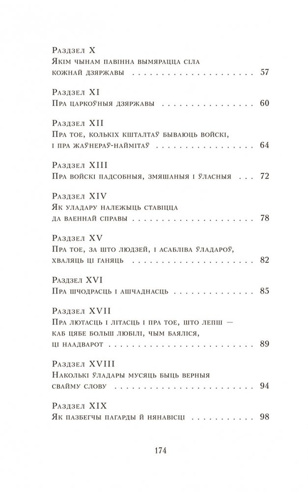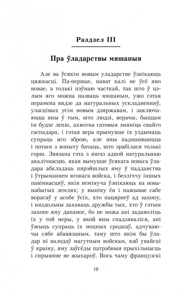 І калі ўжо ўладар павінен умець дзейнічаць па-звярынаму, то лепей за ўсё яму прыпадобніцца да льва і лісіцы, бо, калі ён будзе толькі львом, то не ўратуецца ад пастак, а калі толькі лісіцай, не ўратуецца ад ваўкоў. А значыць, каб распазнаць пасткі, яму трэба быць лісіцай, а каб адпудзіць ваўкоў — ільвом.