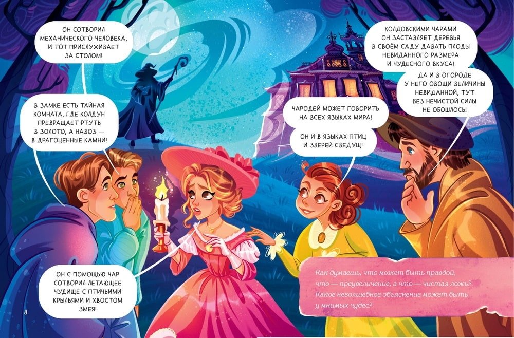 Друзьям предстоит пройти немало испытаний, перехитрить злодеев и разгадать кучу загадок. Но читатель не останется в стороне. Чтобы прочитать книгу, помочь героям и выяснить, что случилось в замке колдуна, придется проявить смекалку и упорство и расшифровать все тексты.