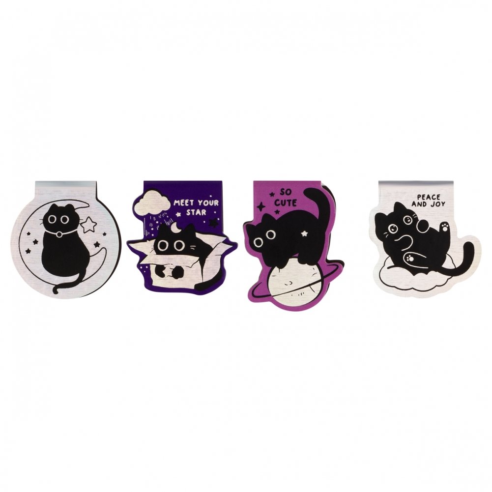 Закладки магнитные для книг, 4шт., MESHU "Meow Space", голографическая фольга