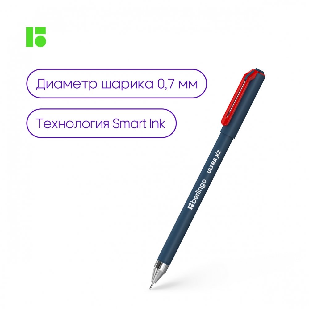 Ручка шариковая Berlingo "Ultra X2" красная, 0,7мм, игольчатый стержень