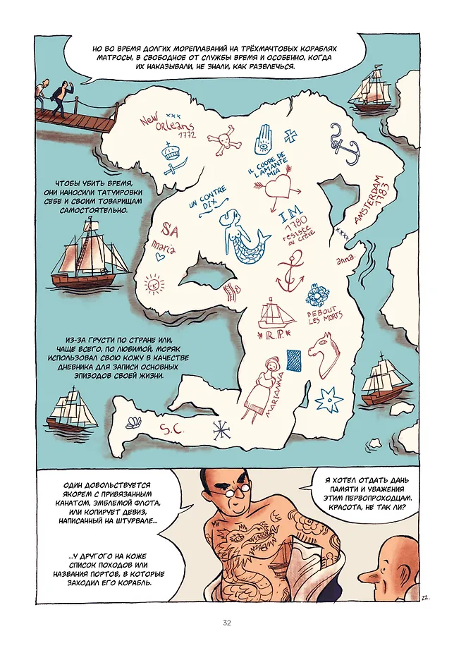 Татуировка — искусство, которое веками украшало тела людей, отражая их верования, статус и бунтарский дух. От древних ритуалов до современных тату-салонов, эта практика всегда была способом самовыражения. Но как зародилась традиция татуировки? Каким образом она превратилась в искусство? И почему восприятие татуировки до сих пор вызывает споры? В этом комиксе сценарист Жером Пьерра и художник Альфред, страстные поклонники тату-культуры, раскрывают богатую историю этого феномена. Они проведут вас через тысячелетия — от неолитических узоров до татуировок пиратов, моряков и современных икон стиля. С помощью ярких иллюстраций и лаконичного текста авторы показывают, как татуировки стали символом свободы, идентичности и даже протеста. Если вы цените искусство, которое рассказывает истории на коже, или хотите узнать, как татуировка завоевала мир, этот комикс — для вас!
