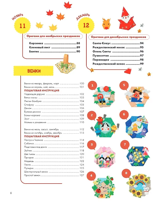 Ваш ребенок откроет волшебный мир оригами, в котором каждое время года приносит новые идеи для творчества! Благодаря этой книге вы сложите из бумаги удивительные декорации и подарки, которые будут радовать каждый день. Все разделы посвящены 12 месяцам, каждый из которых добавит яркости семейным праздникам и поможет провести их весело, складывая оригами. Вы найдете пошаговые инструкции по складыванию более 60 фигурок и советы от автора по их использованию. С подробными мастер-классами ваш ребенок научится складывать как простые 2D оригами, так и объемные и даже модульные фигуры. А если объединить несколько фигурок, вы получите уникальные венки со сказочными мотивами, забавными персонажами и сюжетами. Они обязательно дополнят веселую вечеринку и порадуют в будни!