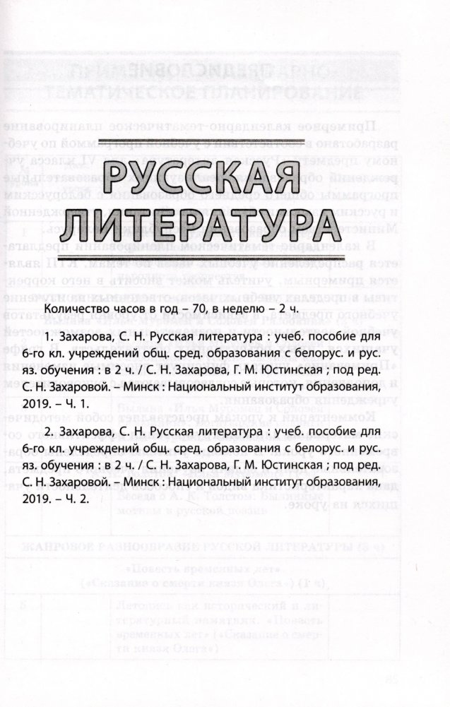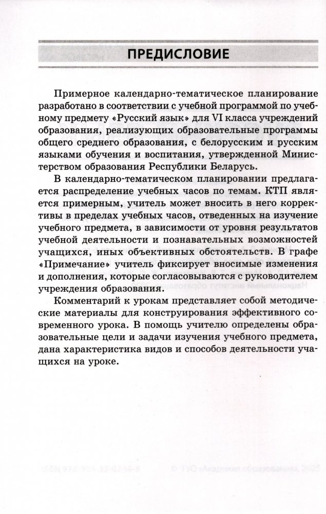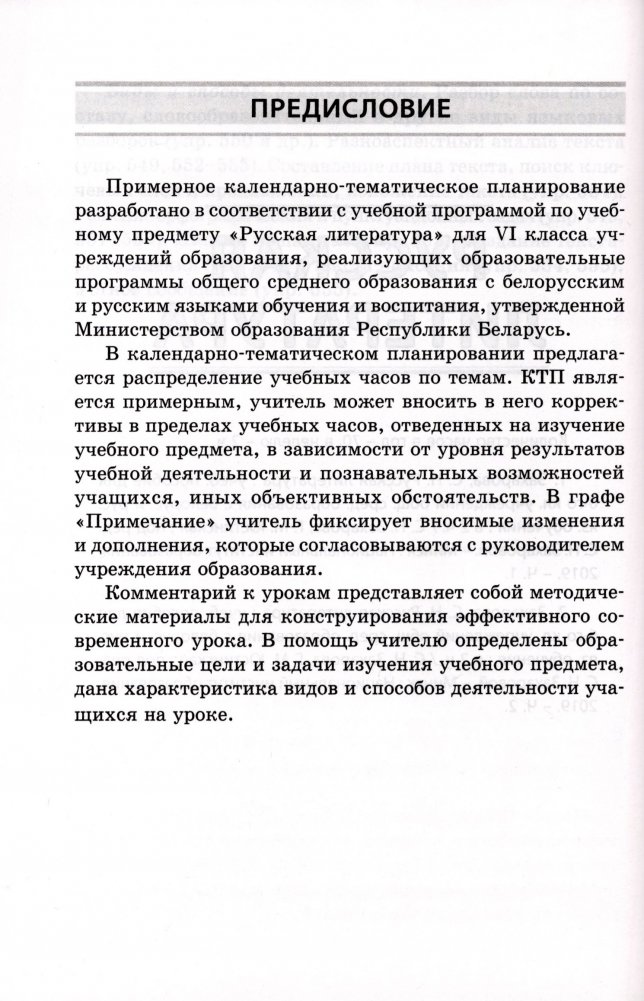 Примерное календарно-тематическое планирование разработано в соответствии с учебной программой по учебным предметам "Русский язык" и "Русская литература" для VI класса учреждений образования, реализующих образовательные программы общего среднего образования, с белорусским и русским языками обучения и воспитания, утвержденной Министерством образования Республики Беларусь.