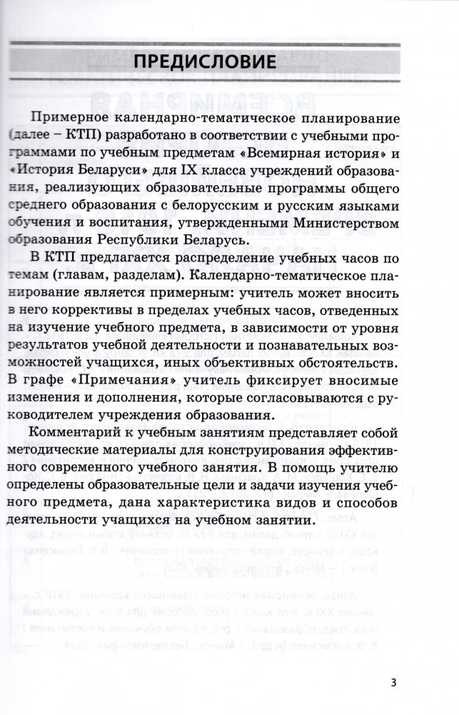 Примерное календарно-тематическое планирование разработано в соответствии с учебными программами по учебным предметам "Всемирная история" и "История Беларуси" для IX класса учреждений образования, реализующих образовательные программы общего среднего образования с белорусским и русским языками обучения и воспитания, утвержденными Министерством образования Республики Беларусь.