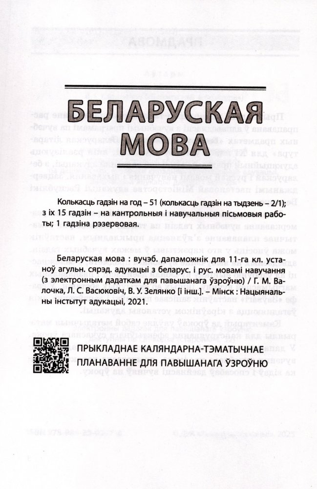Беларуская мова. Беларуская літаратура. 11 клас. Прыкладнае каляндарна-тэматычнае планаванне. 2025/2026 навучальны год