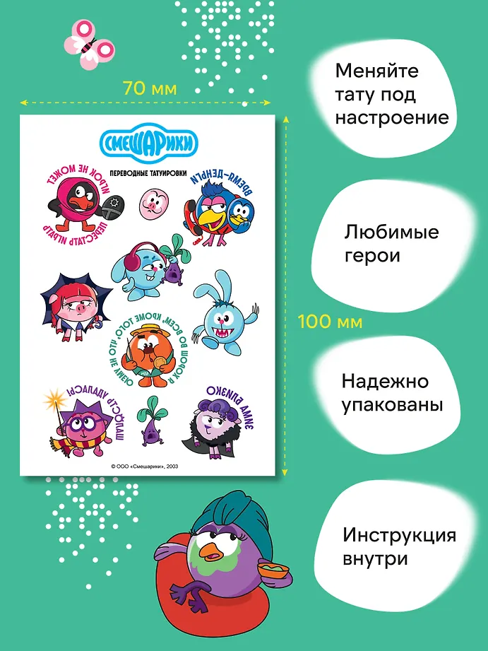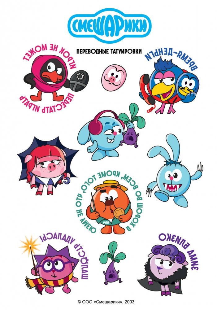 Шалость удалась! Побалуй своего внутреннего ребенка! Специально для этого Смешарики примерили на себя новые образы. Задай себе стиль с помощью переводных татуировок.