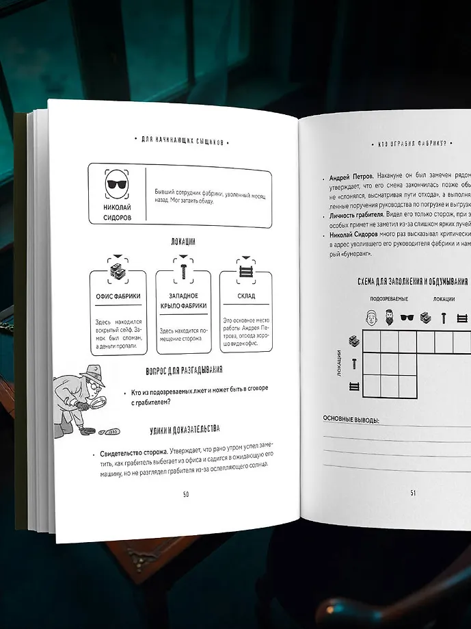 Давно хотели попробовать себя в роли настоящего сыщика? Тогда вас ждет 40 увлекательных детективных головоломок, с которыми вы сможете испытать свою смекалку и интуицию! Хмурый егерь, подозрительная повариха или лучший друг жертвы – кто убийца? Решать вам! В серии книг представлены задачки любого уровня: как для начинающих детективов, так и для специалистов высшей категории. Прокачайте логику, разгадывая запутанные дела: изучайте мотивы каждого подозреваемого, обращайте внимание на зацепки и улики, сопоставляйте факты, заполняйте дедуктивные сетки – и вы обязательно придете к верным выводам!