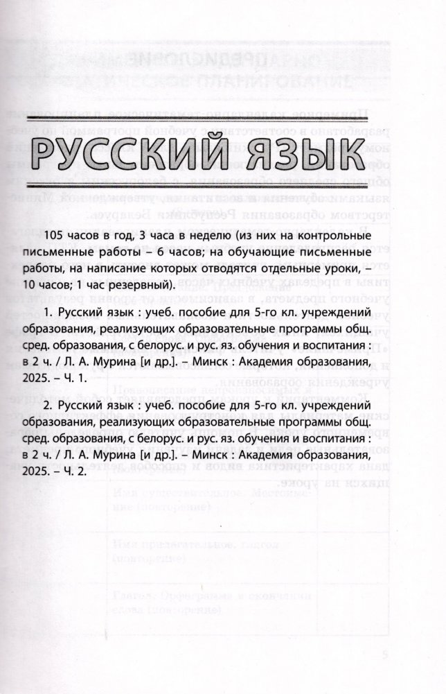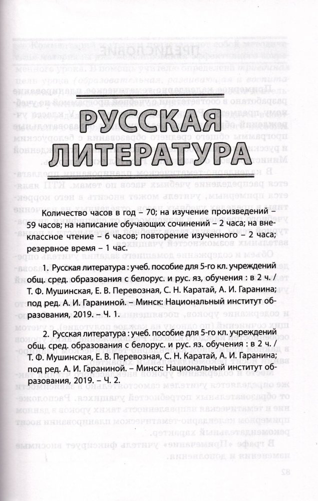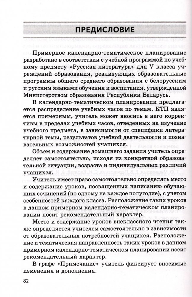 Примерное календарно-тематическое планирование разработано в соответствии с учебной программой по учебным предметам "Русский язык" и "Русская литература" для V класса учреждений образования, реализующих образовательные программы общего среднего образования, с белорусским и русским языками обучения и воспитания, утвержденной Министерством образования Республики Беларусь.