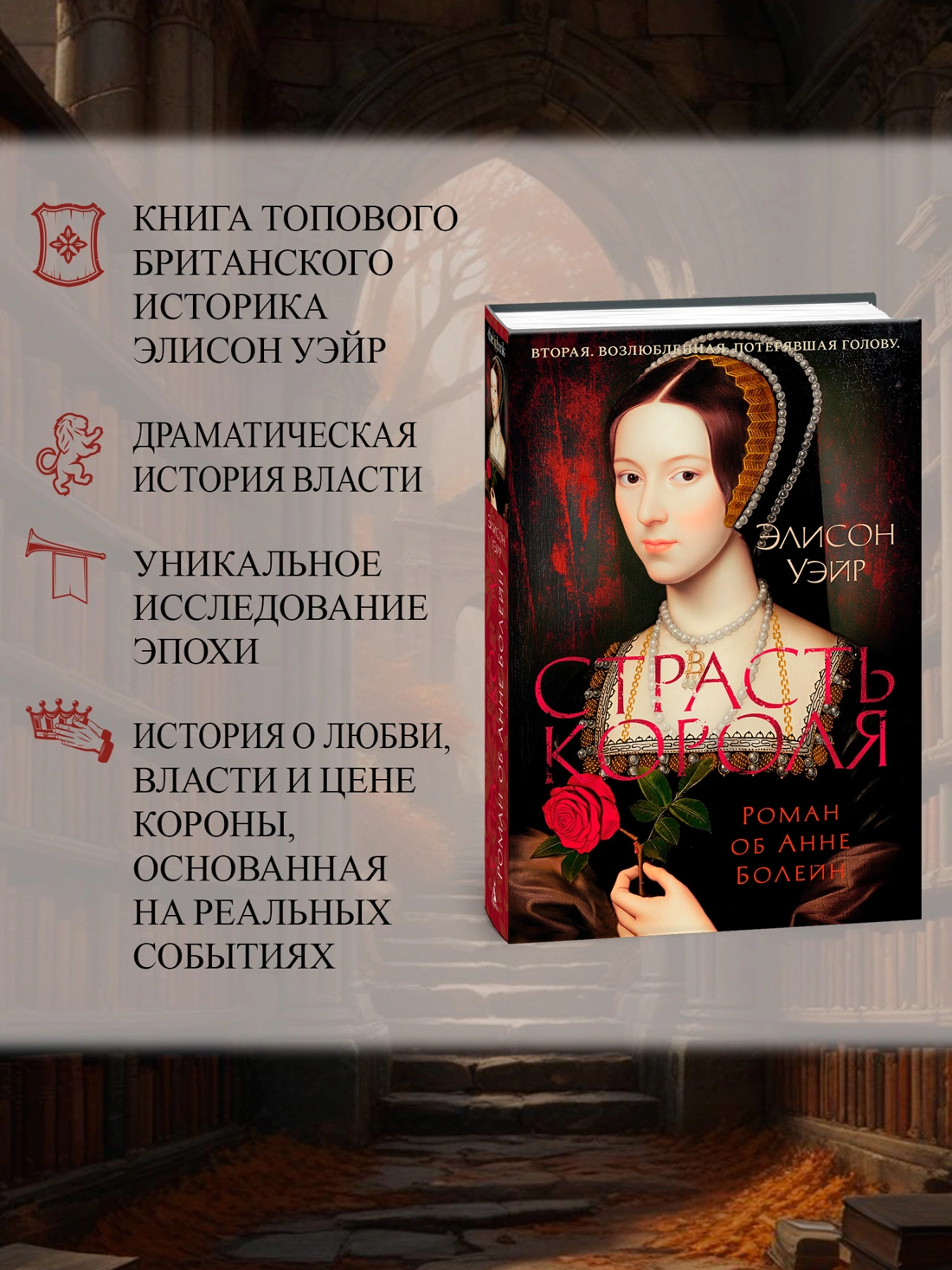 Силой своего писательского таланта популярный автор и известный историк Элисон Уэйр пытается восстановить справедливость по отношению к своей героине, одной из самых трагических фигур XVI столетия — королеве, которую ненавидели подданные; женщине, оболганной перед мужем. «Страсть короля. Роман об Анне Болейн» — это вторая книга из драматической серии, посвященной шести женам короля Генриха VIII.