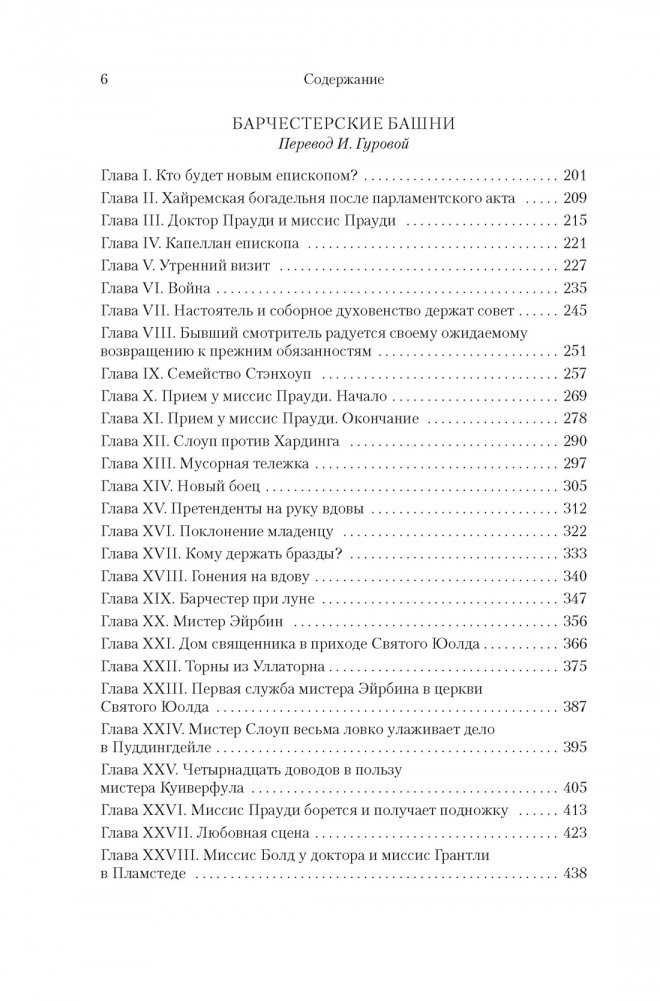 Энтони Троллоп — британский классик, современная популярность которого в англоязычном мире может сравниться разве что со славой Джейн Остин («Троллоп убивает меня своим мастерством», — писал в своем дневнике Лев Толстой), а «Барсетширские хроники» заслуженно считаются едва ли не главным его достижением. (В 1982 году на Би-би-си вышел сериал «Барчестерские хроники», где снимались Алан Рикман и Дональд Плезенс.) Данная книга включает первые две «хроники» — «Смотритель» и «Барчестерские башни», — которые часто сравнивают с «Соборянами» Лескова. В тихом провинциальном городке разыгрываются нешуточные страсти, и в барчестерских соборянах — смотрителе и архидьяконе, епископе и миссис Прауди — читатель неожиданно узнает себя, своих родных и коллег, а в церковных дрязгах викторианской Англии, в конфликте между личной совестью и традиционными привилегиями — животрепещущие проблемы современности.