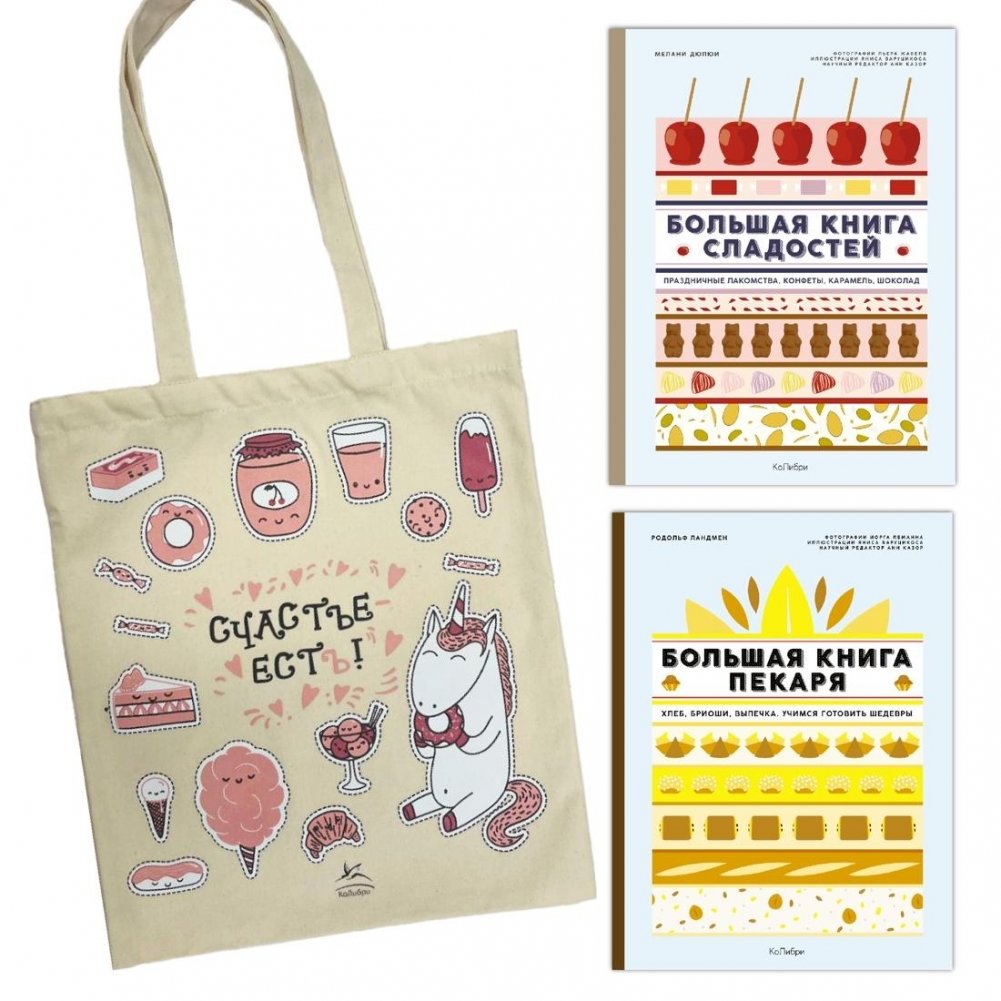 Комплект из яркого шоппера и двух действительно больших книг про сладости и выпечку. Известные повара Франции, Мелани Дюпюи и Родольф Ландмен, и научный редактор Анн Казор создали книги, которые порадуют профессионалов и помогут улучшить кулинарные навыки любителям! Полезный подарок для мамы, бабушки, сестры и подруги.