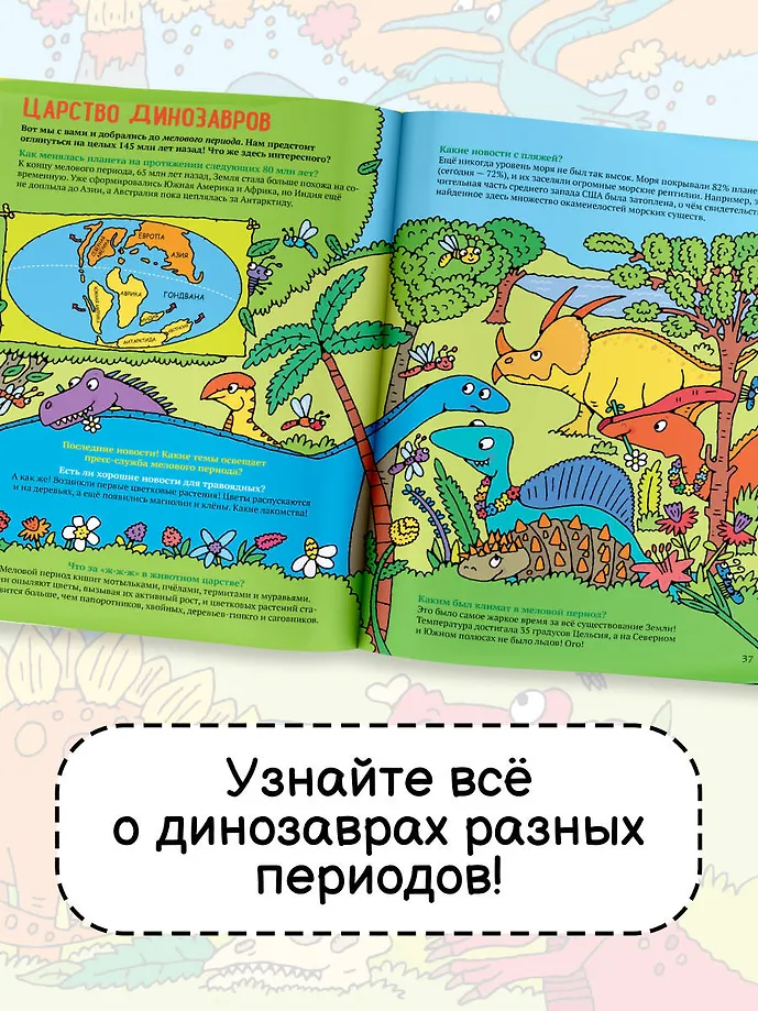 УАРРРР! Какого размера брахиозавр? Чем питался велоцираптор? Пукали ли динозавры? Юные искатели окаменелостей, отправляемся в путешествие во времени! Узнайте всё о динозаврах разных периодов: от древнейшего эораптора до ужасающего тираннозавра рекса, — об окружавшем их мире и других существах, с которыми они делили планету.