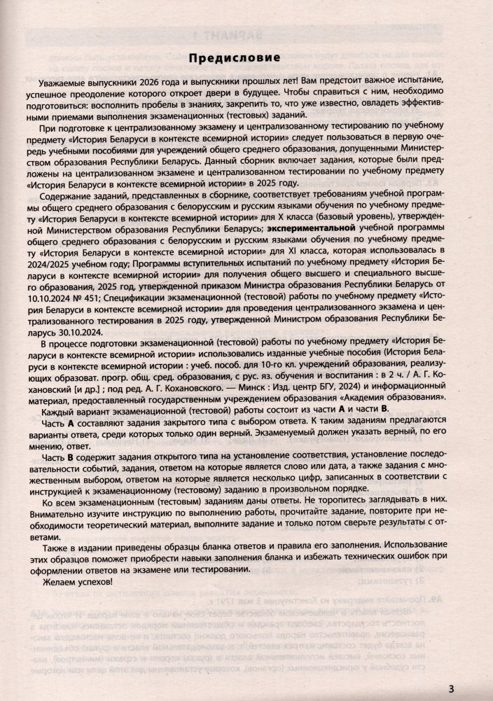 Сборник тестов содержит экзаменационные (тестовые) задания по учебному предмету «История Беларуси в контексте всемирной истории», предложенные участникам централизованного экзамена и централизованного тестирования в 2025 году. Ко всем заданиям даны ответы. В издании приведены также образцы бланка ответов, использование которых поможет приобрести навыки заполнения бланка и избежать технических ошибок при оформлении ответов на экзамене и тестировании.