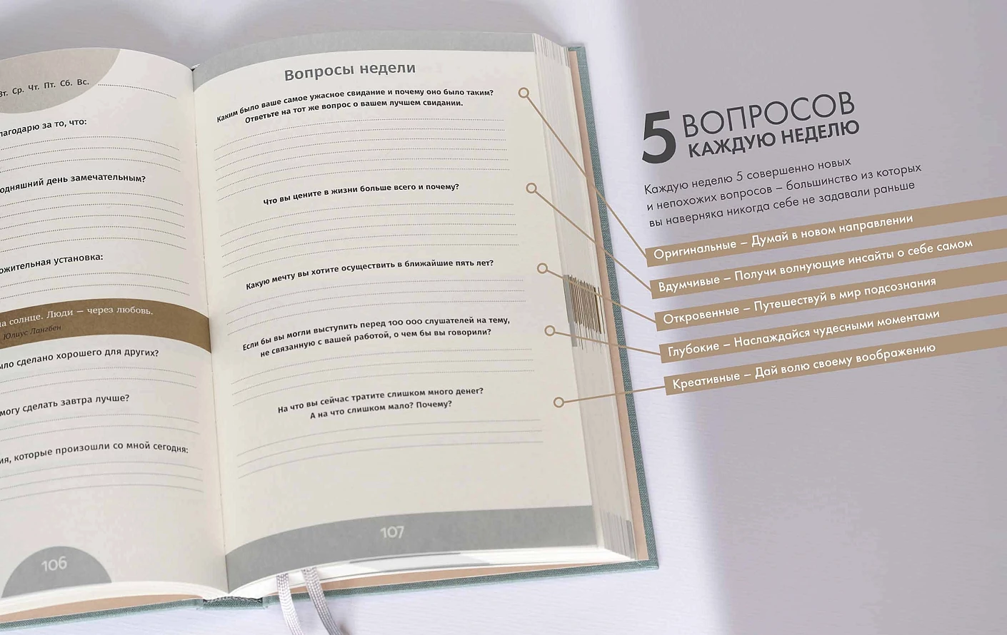 - Самый продаваемый мотивационный ежедневник в Германии и России. Бестселлер Amazon. Переведен на 20 языков. Каждый день благодаря ему более 2 000 000 человек по всему миру делают свою жизнь осознаннее