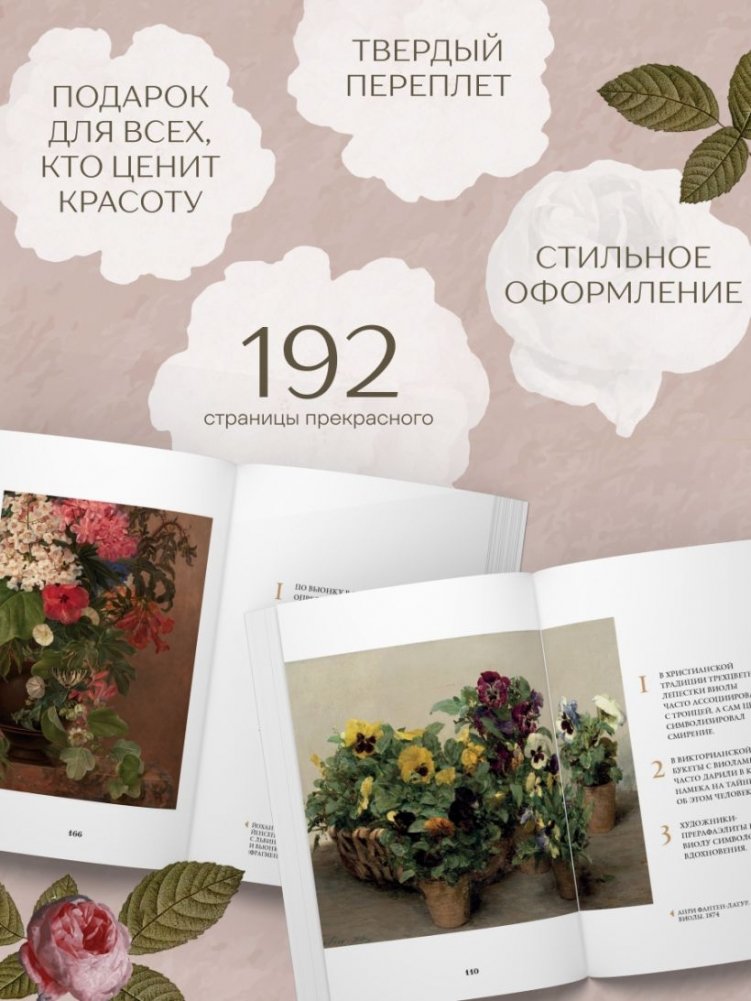 Цветы — универсальный язык чувств, но его грамматикой владеют не все. О чем на самом деле говорит ваш букет? Роскошные пионы, нежная сирень, скромные ландыши или страстные гвоздики — каждый цветок хранит скрытое послание. Цветы всегда служили настоящим магнит для художников. Мастера флорального натюрморта — датский живописец Йохан Йенсен, голландец Ян Брейгель (Старший), английский прерафаэлит Джон Уотерехаус, импрессионист Клод Моне и японский мастер гравюры Утагава Хиросигэ оставили после себя великолепные изображения отдельных цветов и пышных букетов. Всего в книге собрано около 90 картин, посвященных 23 садовым, луговым и лесным цветкам.