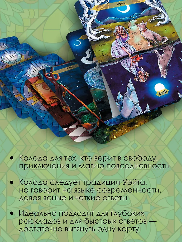 Колода идеально подходит как для глубоких раскладов, так и для быстрых ответов — иногда достаточно вытянуть одну карту, чтобы понять, что ждет впереди.