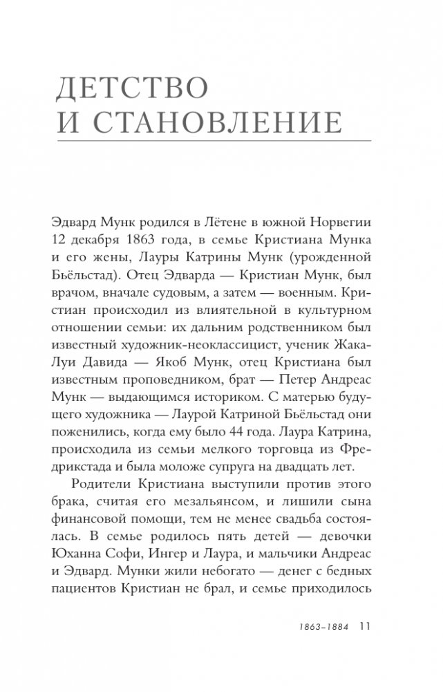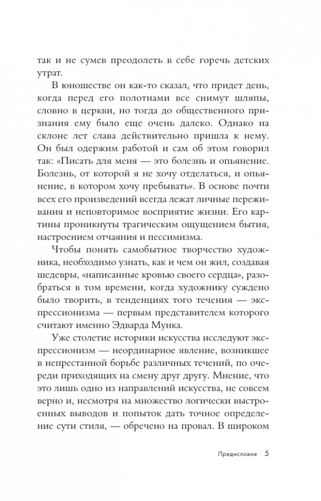 Книга рассказывает о жизни и творчестве самого противоречивого и загадочного художника мировой живописи — Эдварда Мунка, автора знаменитого полотна "Крик". Творчество Мунка разнообразно по темам и жанрам. Художник писал портреты, пейзажи, бытовые сцены и картины со сложным символистским подтекстом, создавал графические произведения. Однако значение Мунка-художника не только в многоплановости его искусства, а в и особой философии мастера, в его способности неоднозначно видеть и трактовать окружающий мир.