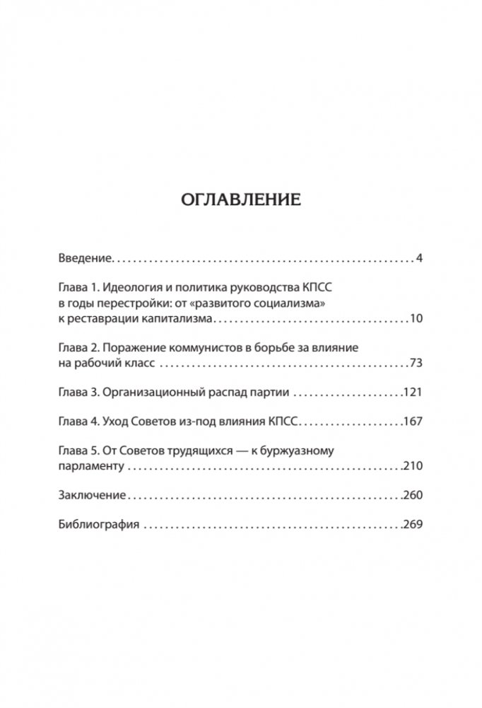 Книга «Конец истории КПСС» отвергает подобные версии. Она исследует внутренние причины поражения КПСС и СССР. К печальному концу их привела политика руководителей, направленная на реставрацию капитализма, наложившаяся на процессы «возвратного классообразования», подспудно вызревавшие в советском обществе на протяжении десятилетий.