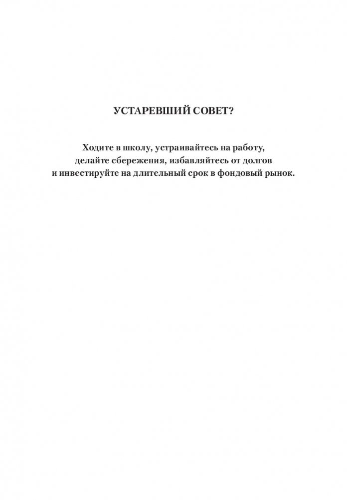 Это не сладкая сказочка с непригодными для достойной жизни советами, а своего рода учебник для выпускников финансовой школы Богатого Папы. Если вы ищете новые идеи, способные обеспечить вам не только выживание, но и процветание в будущем, значит, вы нашли подходящую для себя книгу.