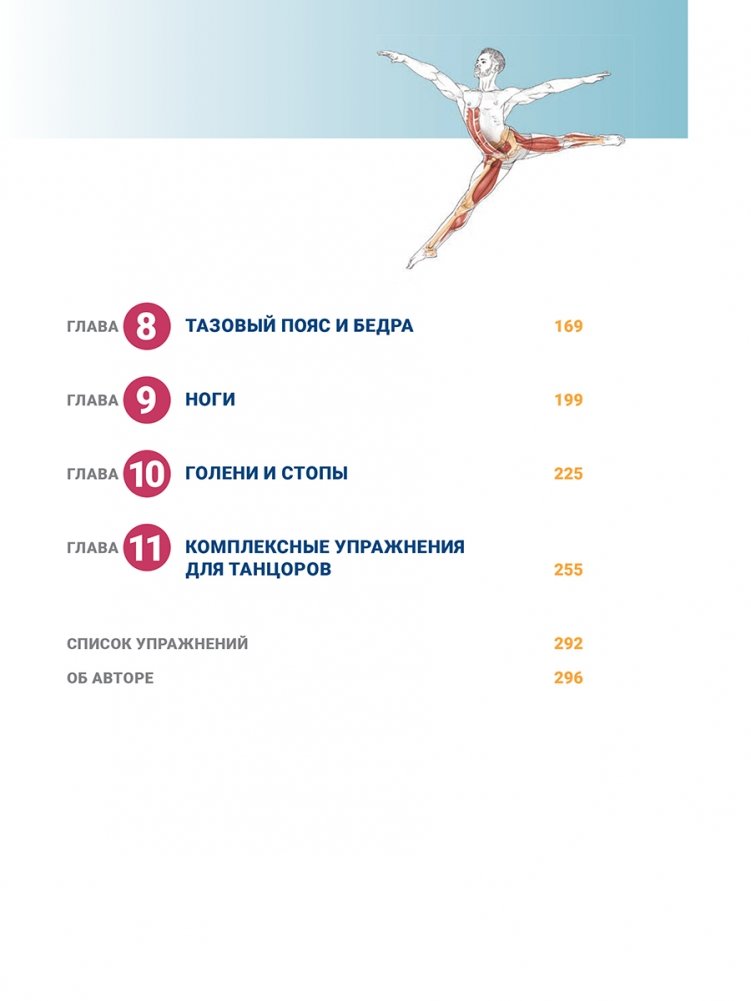 Это практическое руководство содержит более 100 упражнений, направленных на совершенствование техники танца, улучшение осанки, освоение правильной модели дыхания и профилактику травм. А более 250 цветных иллюстраций в мельчайших деталях демонстрируют тело танцора в движении и активно работающие мышцы. Новая редакция книги дополнена новыми главами, которые помогут вам понять, как мозг влияет на выполнение вами движений и как избежать травм. Вы сможете модифицировать приведенные здесь упражнения и составить на их основе индивидуальную программу в соответствии со своим стилем танцев, уровнем подготовки и личными целями и задачами. Независимо от вашей физической формы и стиля танцев, книга поможет вам обрести безупречное равновесие, способность идеально управлять своим телом и грациозность, необходимые для вашей следующей главной роли. Эта книга подробно иллюстрирует наши мышцы в движении. Она должна быть у каждого танцовщика. — Виктория Морган, балетмейстер Жаклин создала идеальный инструмент для преподавателей и танцовщиков любых направлений и стилей танца. Книга позволяет наглядно увидеть взаимосвязь между каждым упражнением и целенаправленным совершенствованием физиологии и техники. — Джеймс Нельсон, исполнительный директор балета Хьюстона Обязательная книга для всех исполнителей и хореографов, которые заботятся о своей танцевальной форме. Она полностью перевернула мой подход к преподаванию кинезиологии танцовщикам. Купите! Прочтите! Расскажите остальным! — Джефф Расселл, преподаватель Университета штата Огайо, член Международной ассоциации танцевальной медицины и науки.