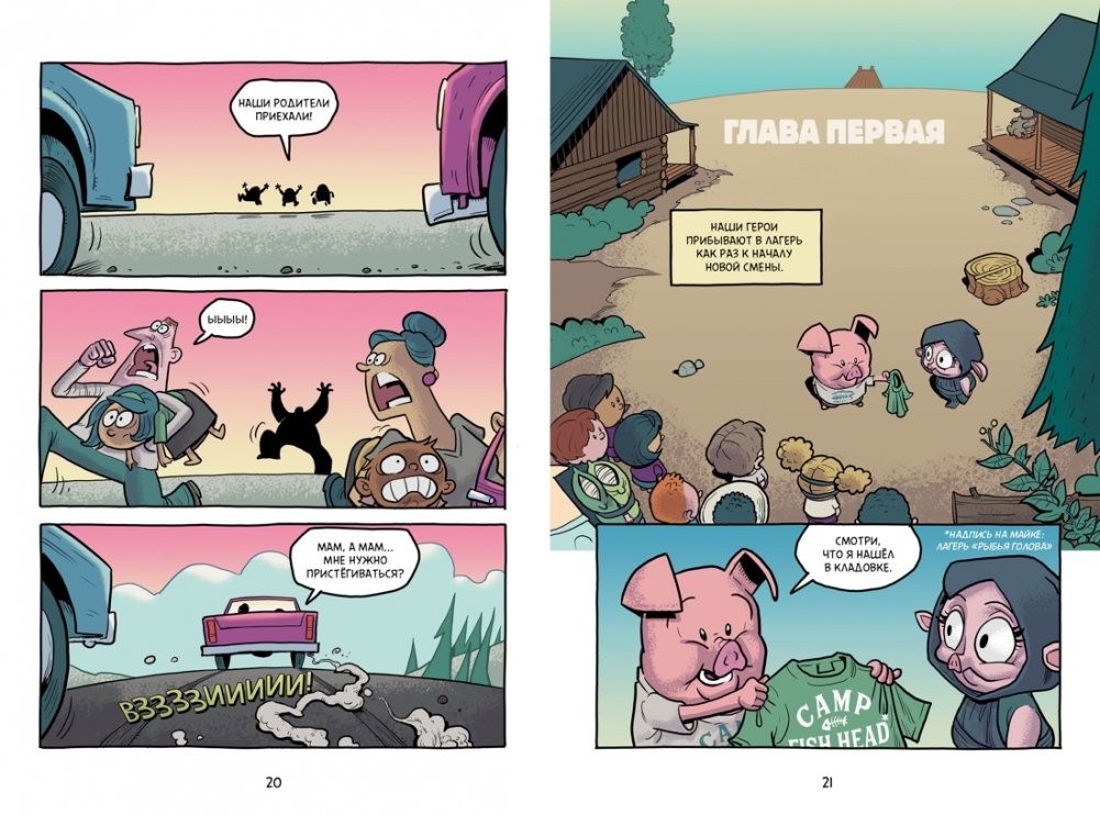 Летний Лагерь «Рыбья голова». Мастер-классы по рисованию, трёхразовое питание, посиделки у костра и… монстр из озера, который, возможно, захочет тебя съесть! Но без паники: отважный поросёнок Хрю Хельсинг и команда его друзей уже спешат на помощь! Они-то выяснят, кто творит безобразия и сеет панику!