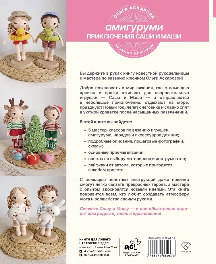 В этой книге представлено: • 5 мастер-классов по вязанию игрушек амигуруми, нарядов и аксессуаров для них; • подробные описания, пошаговые фотографии и схемы; • основные приемы вязания; • советы по выбору материалов и инструментов; • лайфхаки от автора, которые пригодятся в любом проекте. Ольга Аскарова — известная рукодельница и мастер по вязанию крючком. С помощью понятных инструкций даже новички смогут легко связать прекрасных героев, а мастера с опытом вдохновятся новыми идеями. Эта книга понравится всем, кто любит создавать атмосферу уюта и волшебства своими руками!