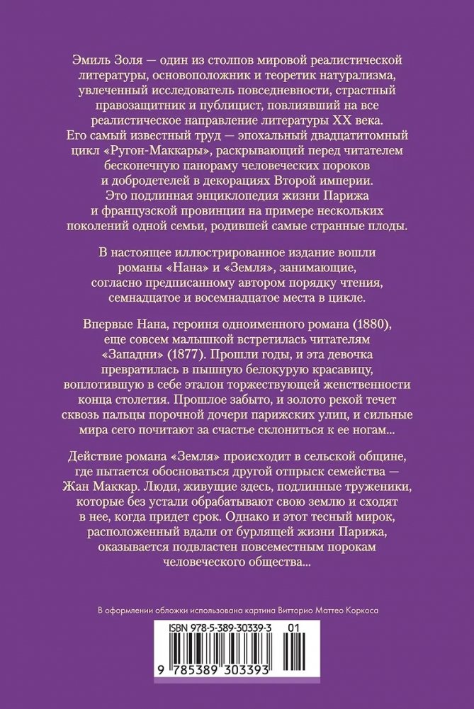 В настоящее иллюстрированное издание вошли романы «Нана» и «Земля», занимающие, согласно предписанному автором порядку чтения, семнадцатое и восемнадцатое места в цикле.