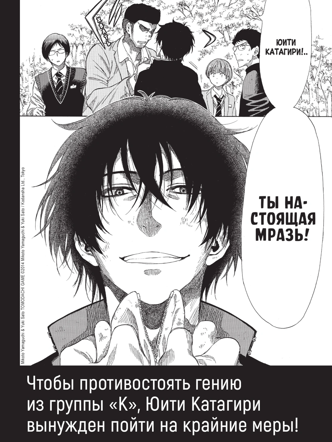 В третьем раунде «Игры друзей» обстановка накаляется. Чтобы противостоять гению из группы «К», Юити Катагири вынужден прибегнуть к крайним мерам. С тех пор, как в его команде появился перебежчик Хякутаро Онигавару, Юити не может действовать согласно своему плану, ведь он должен сторожить Онигавару. Но если Юити и Тэндзи не выиграют, друзьям не удастся выяснить, кто и зачем организовал эту жестокую игру. Тем временем Савараги, Сибэ и Кокороги ненадолго возвращаются к привычной жизни. Правда, и там их поджидают неприятности…