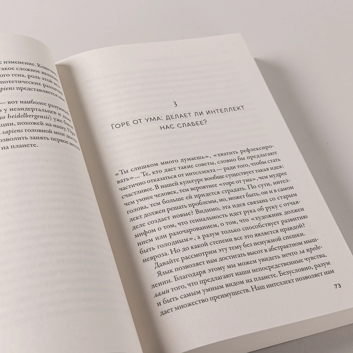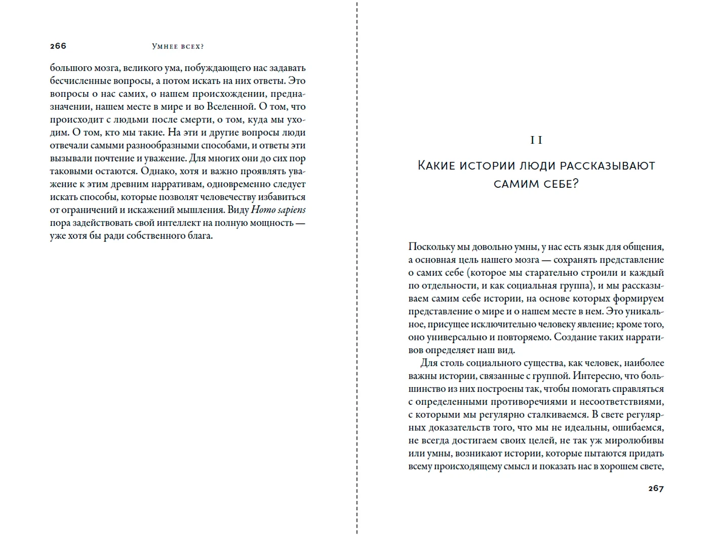 Однако, описав феноменально развитый интеллект Homo sapiens и убедив читателя в том, что мы точно — самые лучшие, автор приходит к парадоксальному выводу: по умолчанию наш мозг нацелен на получение удовольствия, а не на поиск «правды», — и часто столь умен только для того, чтобы суметь обмануть самого себя.