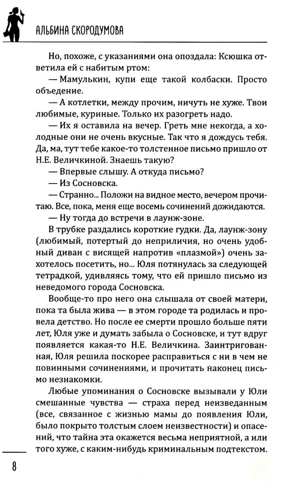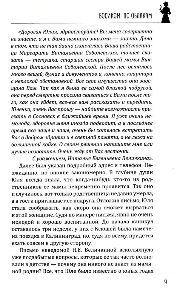 Когда рутина накрывает с головой, в личной жизни длительный простой и полное отсутствие перспектив, да и одиночество уже наступает на пятки, Юлии Нечаевой приходит письмо от незнакомки из неизвестного города Сосновска. Некая дама сообщает о том, что она стала наследницей маленькой квартиры и большого семейного архива своей родной тетушки, о существовании которой даже не подозревала. Юля принимает решение поехать в этот город, и тут начинается самое интересное. В жизни больше нет места скуке и одиночеству, на смену им приходят приключения, которые начинаются уже у трапа самолета, перенесшего ее из размеренной жизни в водоворот невероятных событий и встреч. Девушке через многое придется пройти, чтобы понять, зачем судьба устраивает ей нелегкие испытания с непонятными целями...
