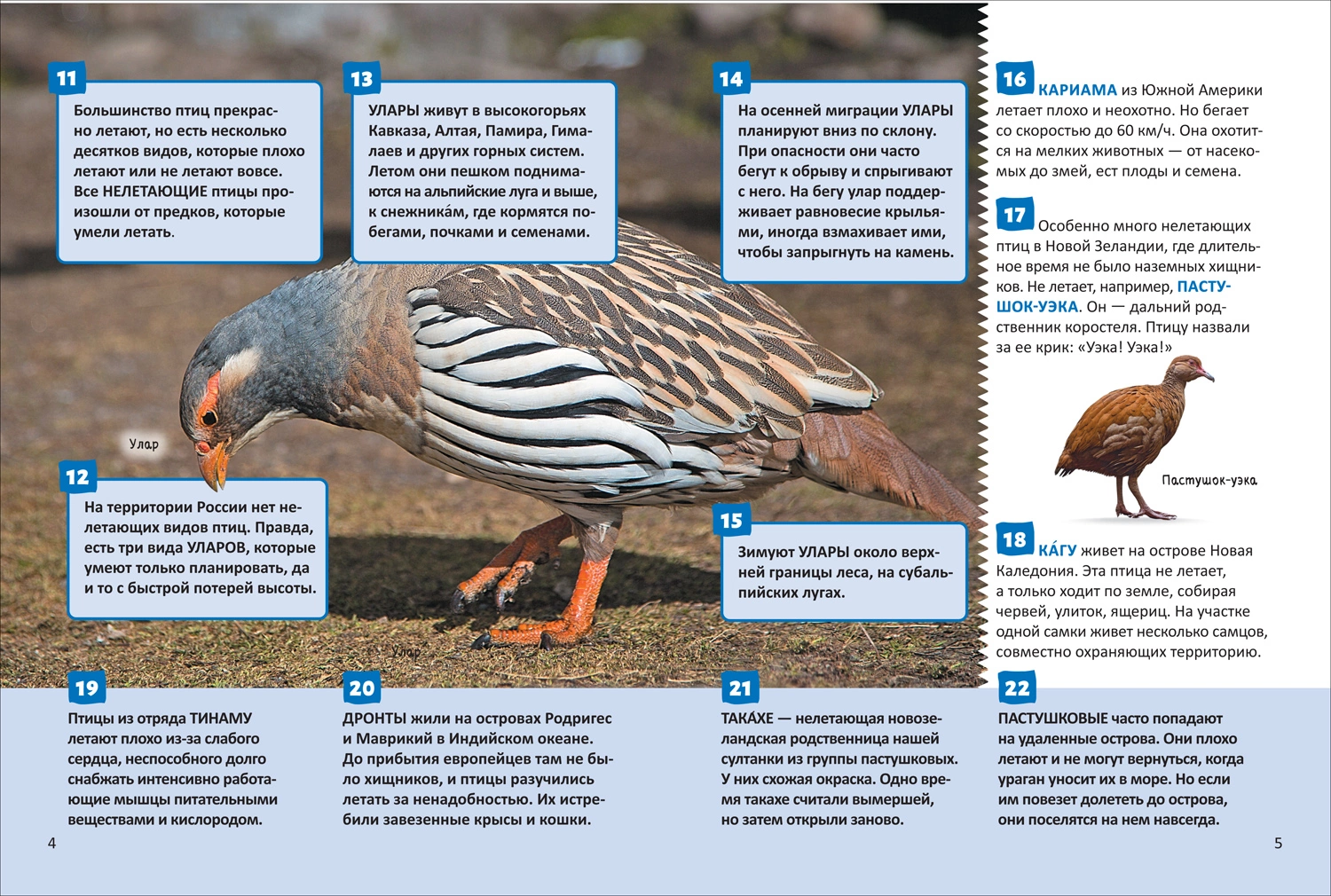 Познавательная, красочно иллюстрированная энциклопедия о жизни птиц. 250 удивительных фактов о дроздах, сороках, колибри и других наших пернатых соседях по планете. Издание станет отличным подарком мальчику и девочке, и надежным помощником в учебе.