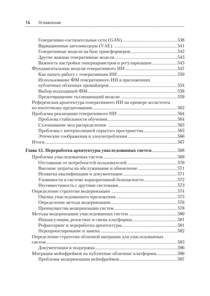 Издание описывает новые интересные возможности, которые позволят вам оставаться в авангарде этой стремительно развивающейся сферы. Большие языковые модели, генеративный ИИ, инновации в области глубокого обучения – все эти революционные достижения формируют будущее технологии. Такие темы, как облачно-ориентированные архитектуры, инженерия данных, облачная оптимизация, модернизация мейнфреймов и создание экономичных и безопасных архитектур, продолжают оставаться актуальными в современной технологической сфере. В книге рассматриваются эти перспективные и ключевые технологии, а также приводится пошаговое описание процесса проектирования архитектур решений, начиная с ключевых принципов. Она снабдит вас знаниями, необходимыми, чтобы стать успешным архитектором решений, а также поможет усовершенствовать гибкие навыки и тем самым получить возможность для развития карьеры.