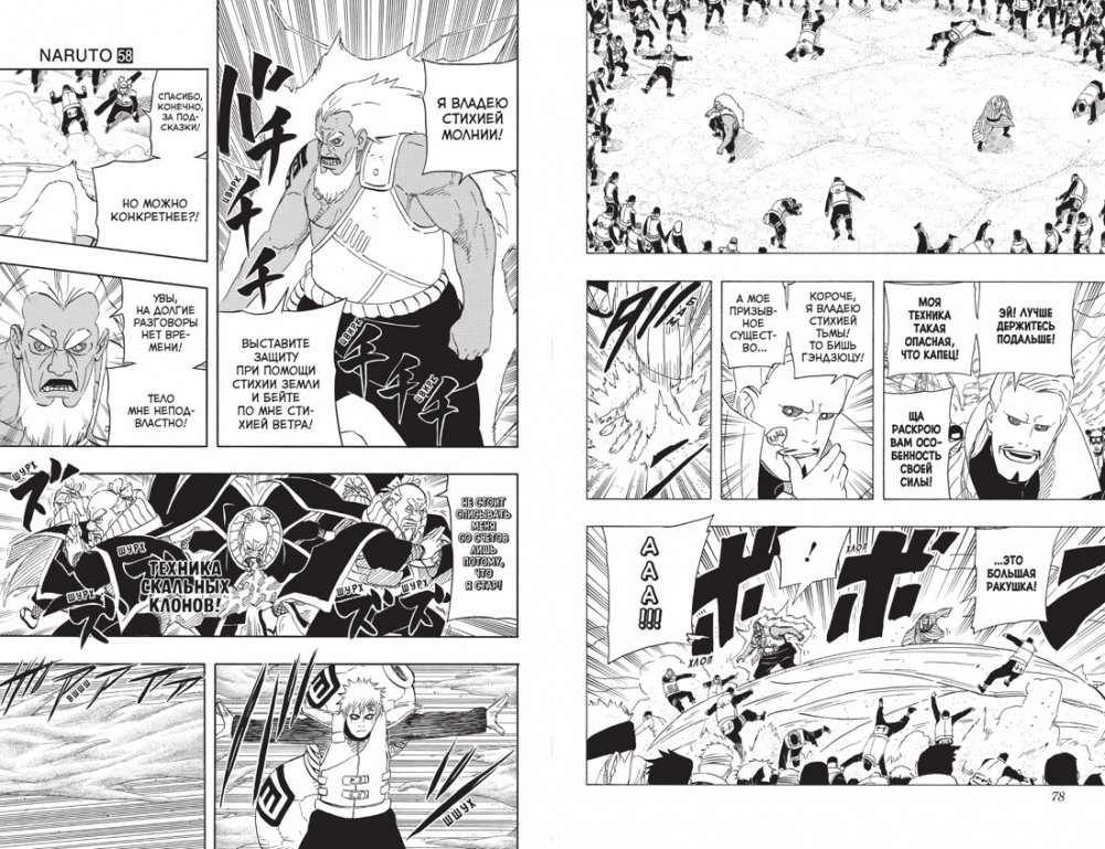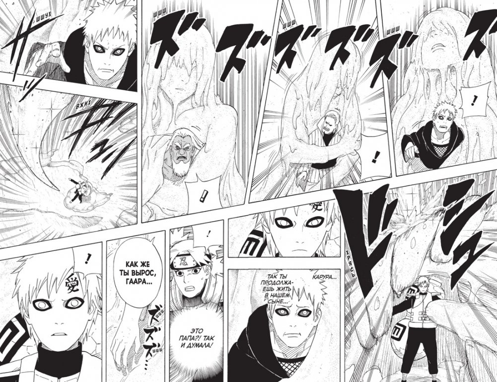 Тем временем нынешние кагэ вступают в битву с предыдущими: Гаара противостоит своему отцу, а Оноки – учителю и бывшему мидзукагэ…