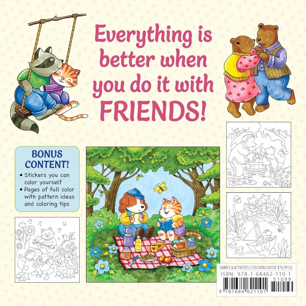 Everything is better when you do it with friends! Unplug and enjoy creatively coloring delightful scenes of cute animal friends engaged in lots of fun activities, whether it be gardening, dancing, fishing, or having a cup of tea.