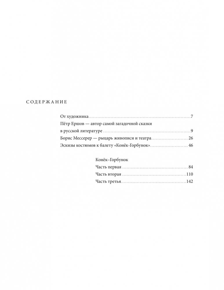 Борис Мессерер создал эскизы для балета «Конёк-Горбунок» на музыку Родиона Щедрина, и, может быть даже незаметно для самого художника, в его рисунках ожили персонажи, те, кого придумал Пётр Ершов полтора столетия назад. И Конёк, и рыбы-ерши, и Жар-птица, не говоря уж об обаятельном лукавом Иване, оказались и волшебными и настоящими. Но это еще не вся тайна этой книги – она скрыта не только в иллюстрациях, но в тексте, и как найти ее – объясняют замечательные специалисты – филолог Ирина Минералова и искусствовед, театральный критик Дмитрий Родионов.