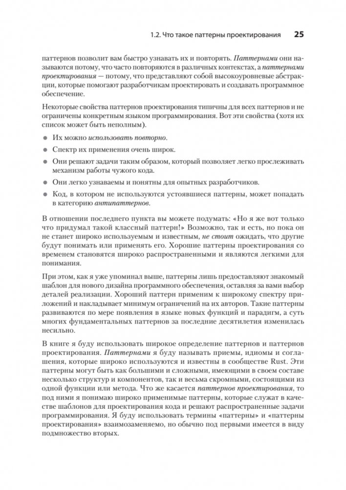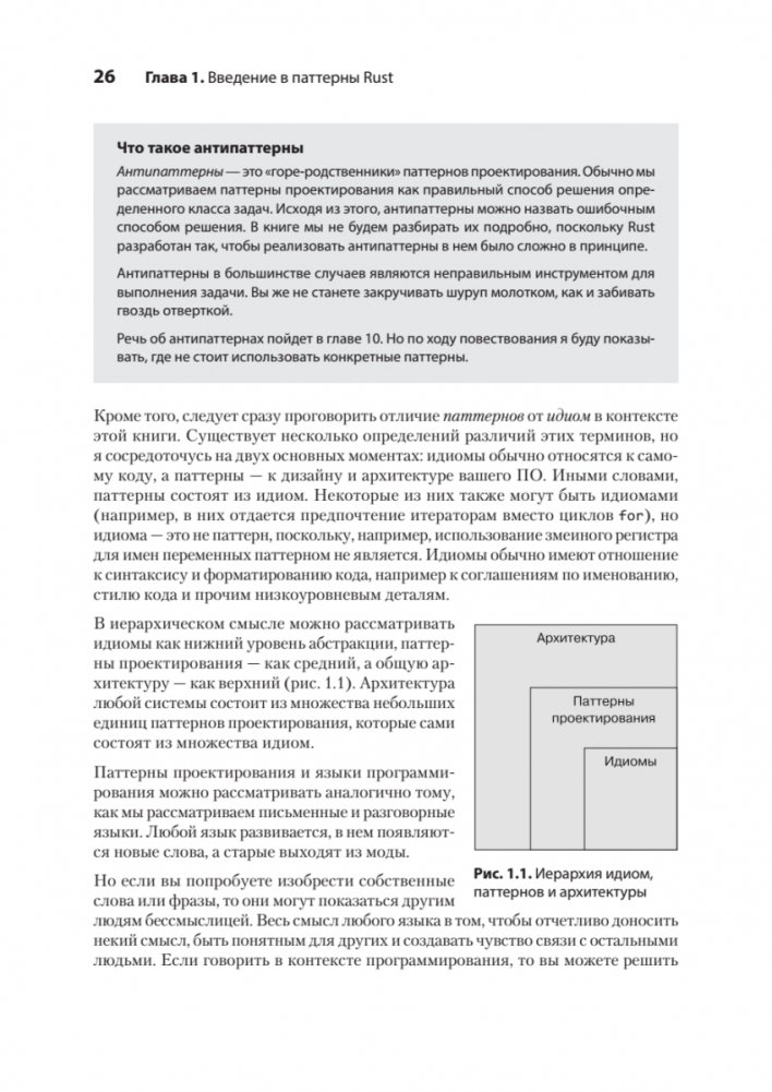 Как только вы освоитесь с синтаксисом Rust, с его уникальным и мощным компилятором и начнете использовать его в реальных проектах, перед вами откроется совершенно новое измерение. Как правильно применять стандартные паттерны проектирования в приложениях на Rust? Как и когда следует использовать IntoIterator? Почему Rust-разработчики любят тип PhantomData? Ответы на эти и многие другие вопросы вы найдете в книге.