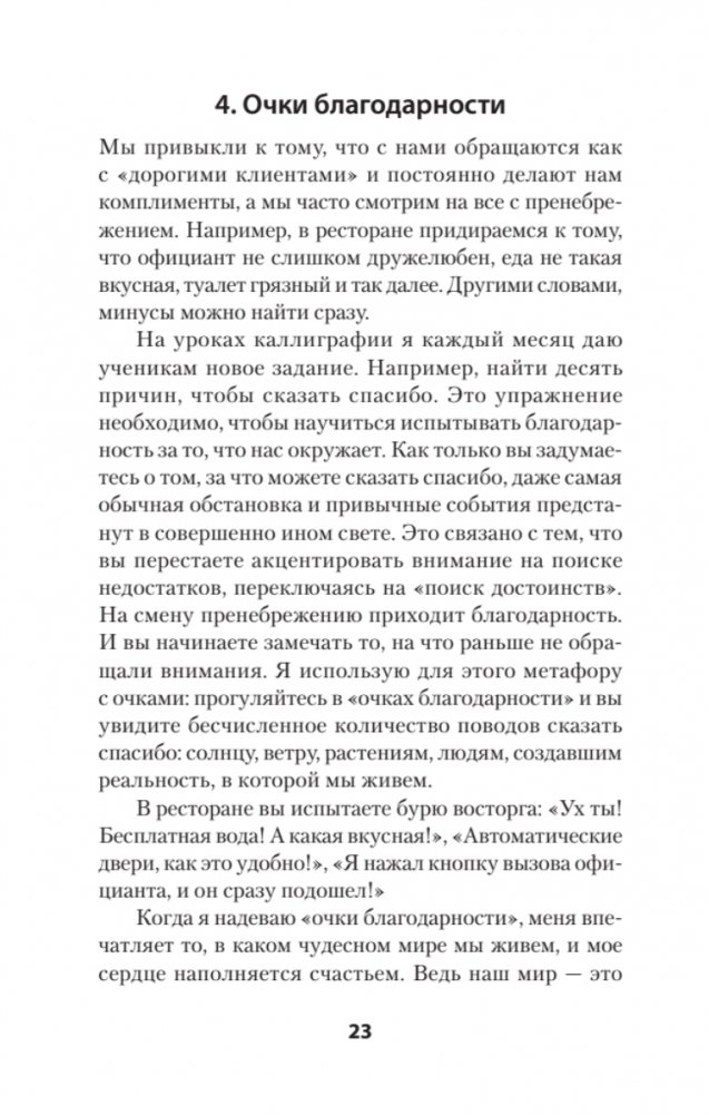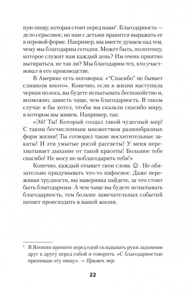Вы хотите быть счастливым? Конечно, да! Но как этого добиться, когда столько поводов для раздражения и грусти? Весь секрет в том, как на это смотреть: сидеть и жалеть о том, что не получается или искать позитивные моменты во всем. О том, как это сделать рассказывает знаменитый японский художник и мыслитель Соун Такэда. Он предлагает читателям уникальный подход к позитивному мышлению, основанный на трех простых законах: делайте счастливыми других, замечайте счастливые моменты и говорите о своем счастье.