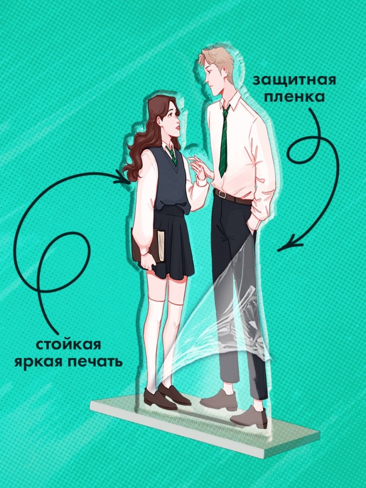 Акриловая фигурка с любимыми персонажами — Селин и Уильямом — это нежный и стильный арт в исполнении великолепной художницы MARKASS. Эмоции и влюбленность, красочная двусторонняя печать — хорошее настроение вам обеспечено.