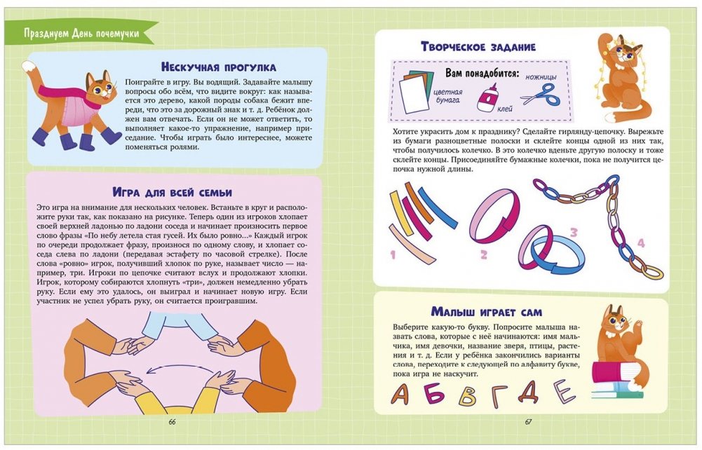 На страницах книги для малышей вас ждут 120 заданий, игр, поделок и сценариев для интересных прогулок, а еще 31 добрая сказка для совместного чтения Clever книги — все, чтобы занять ребенка надолго как дома, так и на улице. Открывайте любую главу книги для детей и выбирайте, что интересно вашей крохе. Подключайте к игре всю семью или предложите ребенку поиграть самостоятельно. Книга подскажет как!
