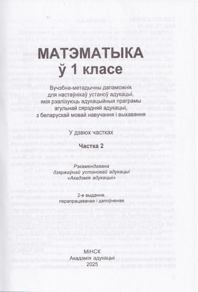 Матэматыка ў 1 класе. Частка 2. Вучэбна-метадычны дапаможнік. ГРЫФ