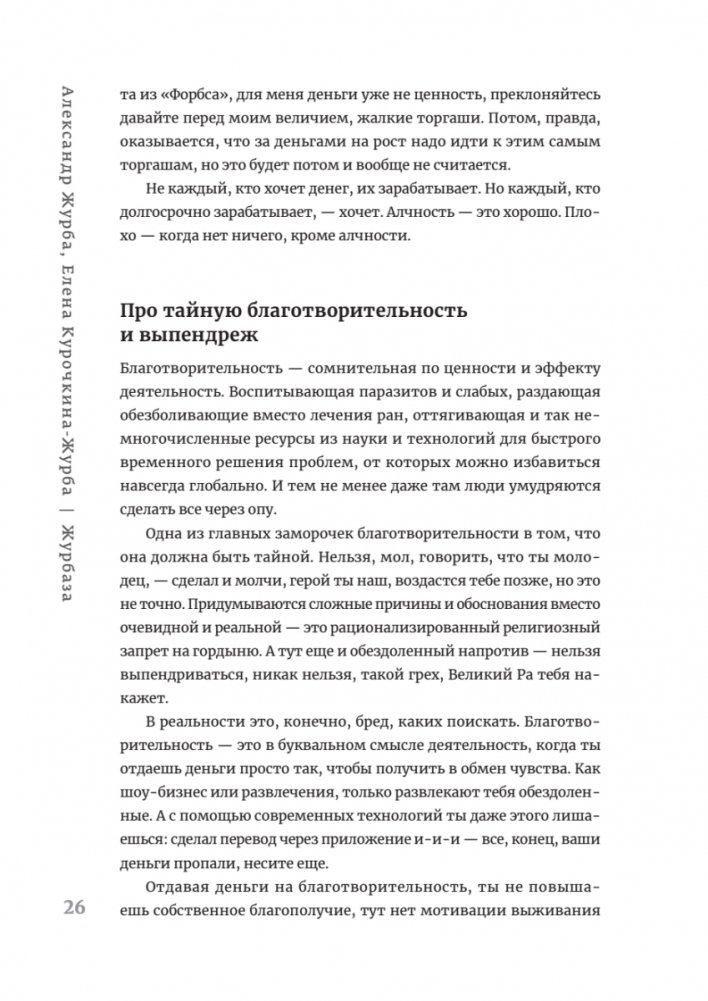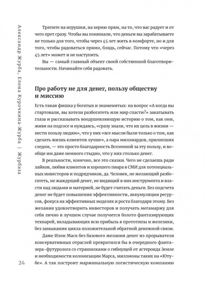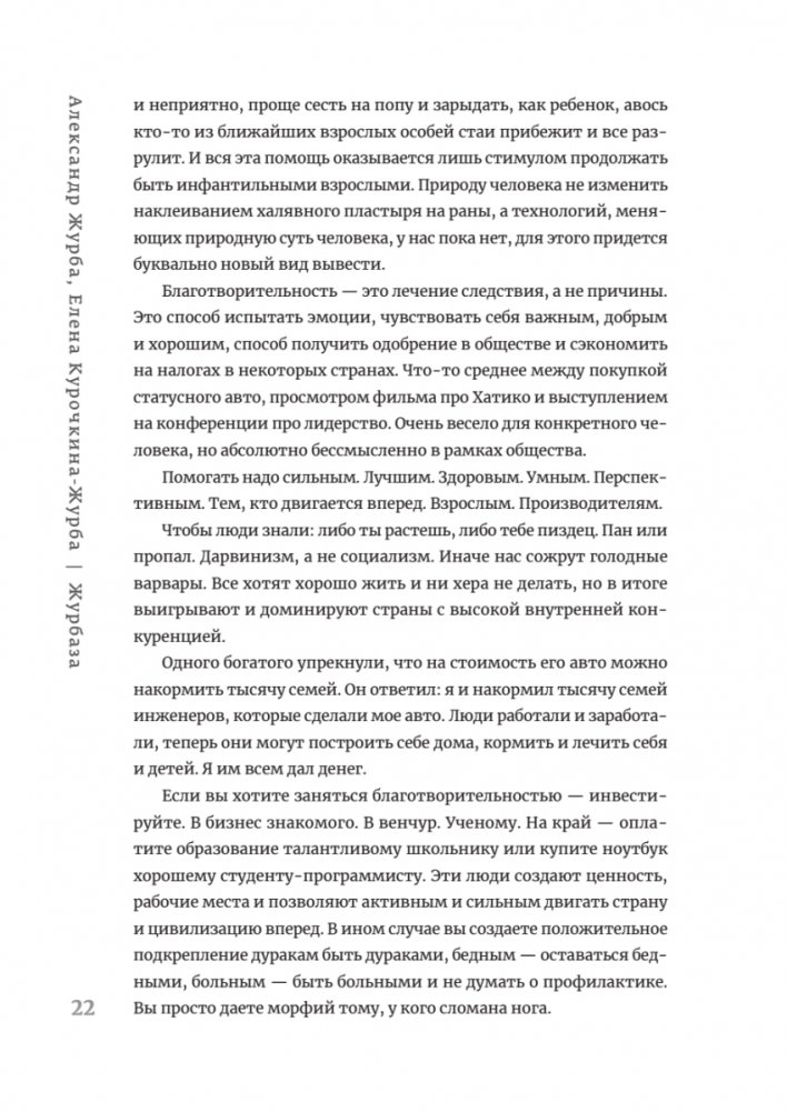 Елена Курочкина-Журба имеет не менее интересную и насыщенную жизнь, но не любит публичность, поэтому книга написана от лица мужчины, но как совместный плод мужского и женского взглядов на жизнь, как синтез своего и чужого опыта, прожитых лет, некомфортных и болезненных событий, рефлексии и потерянных времени, денег, сил и нервов.
