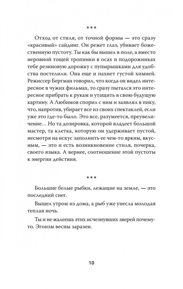 Мозаичная, нелинейная композиция придаёт книге особую динамику. Крупные главы соседствуют с короткими новеллами, создавая ритм, близкий современному восприятию, но при этом не упрощающий содержание. За внешней лёгкостью скрыта изящная, продуманная проза, где в кратких эпизодах рассыпаны яркие художественные образы. Так рождается книга о времени — и вне времени, о людях искусства и о самой жизни, пойманной в её царапинах и отблесках.